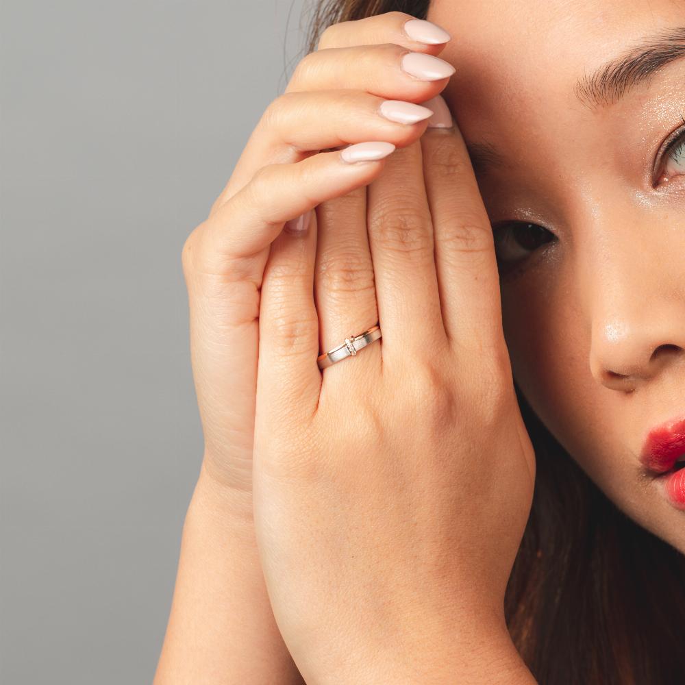 Created to complement Valen, the Valea Ring radiates refined grace. The diamond-set V motif and dual-tone finish symbolize love’s meeting point — a perfect harmony of strength and elegance.