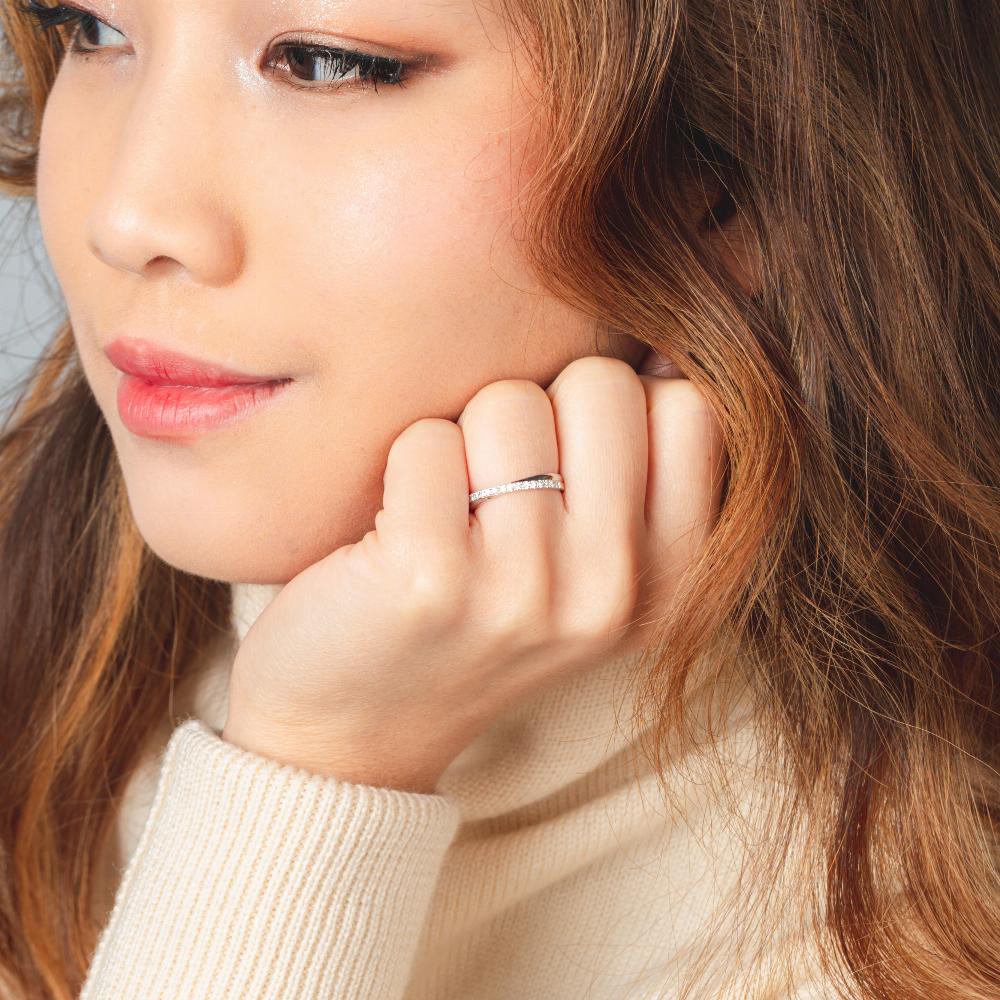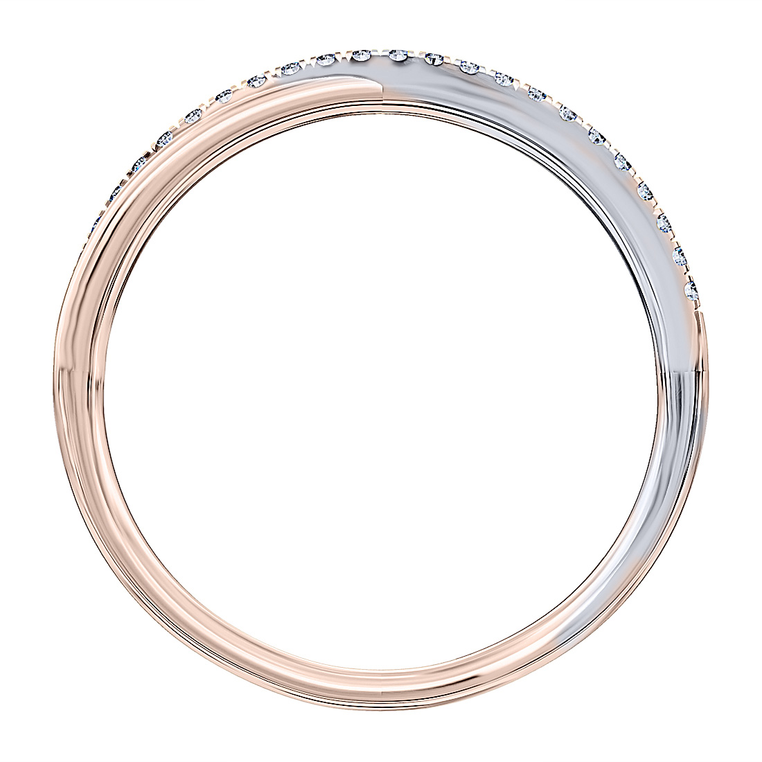 A graceful crossover band traced with pavé diamonds, shimmering with elegance. Romantic and radiant, it perfectly complements its matching band.